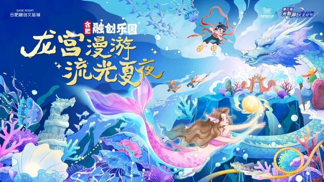 合肥融创乐园第三届光影潮玩文化节将在6月29日开启,40万方《龙宫》主题光影展、安徽首个《美人鱼》龙宫水秀、清凉泼水巡游狂欢电音派对、沉浸式国潮神话奇幻演艺、璀璨网红美物美食市集,为游客们留下一个难忘的夏夜回忆。