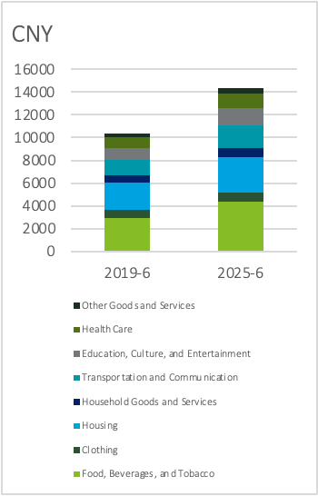 As residents' income levels continue to rise, consumer demands are becoming more diverse and individualised. By the end of September 2025, per capita consumer expenditure had increased by 39.5% compared to the same period in 2019. Meanwhile, the shares of transportation and communication, education, culture, and entertainment—categories within service consumption—have all risen compared to the same period in 2019.