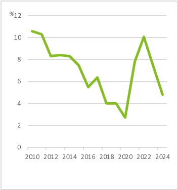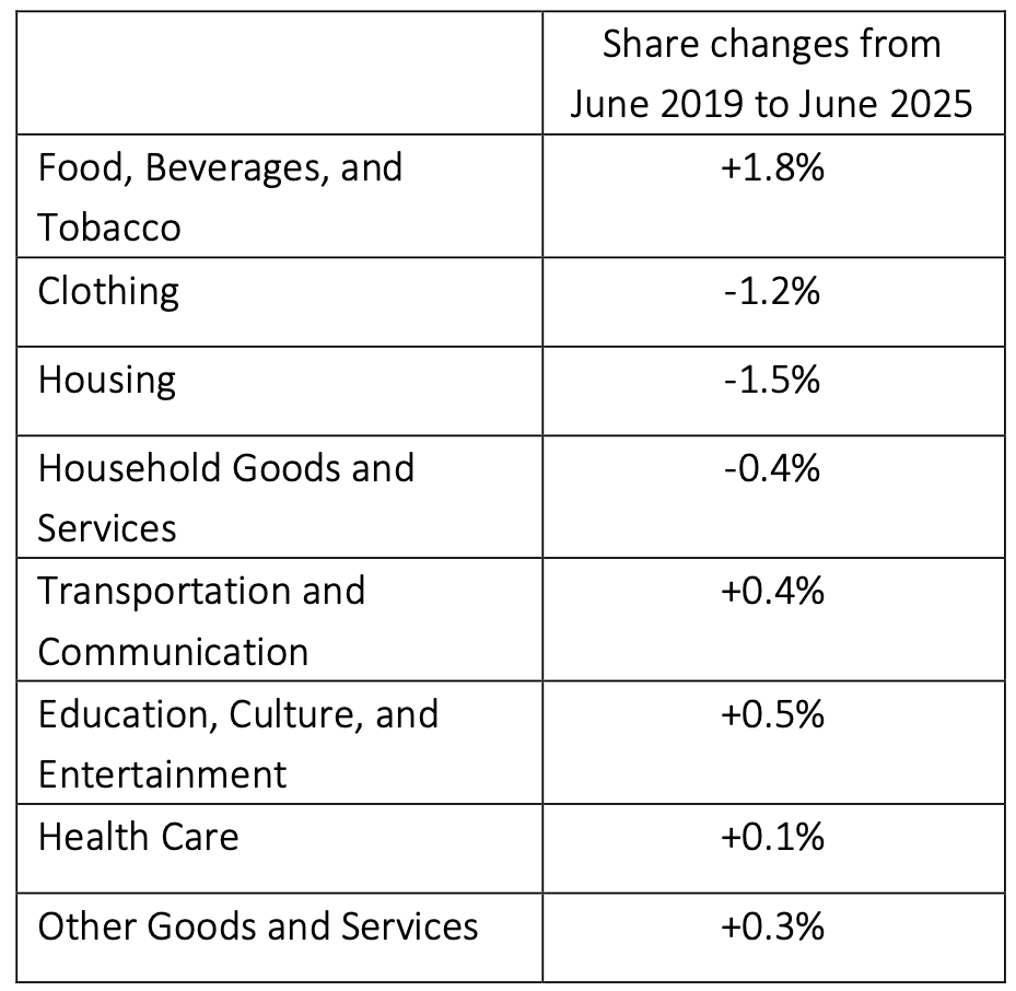 Figure: Changes in the share of eight major categories of per capita consumption expenditure