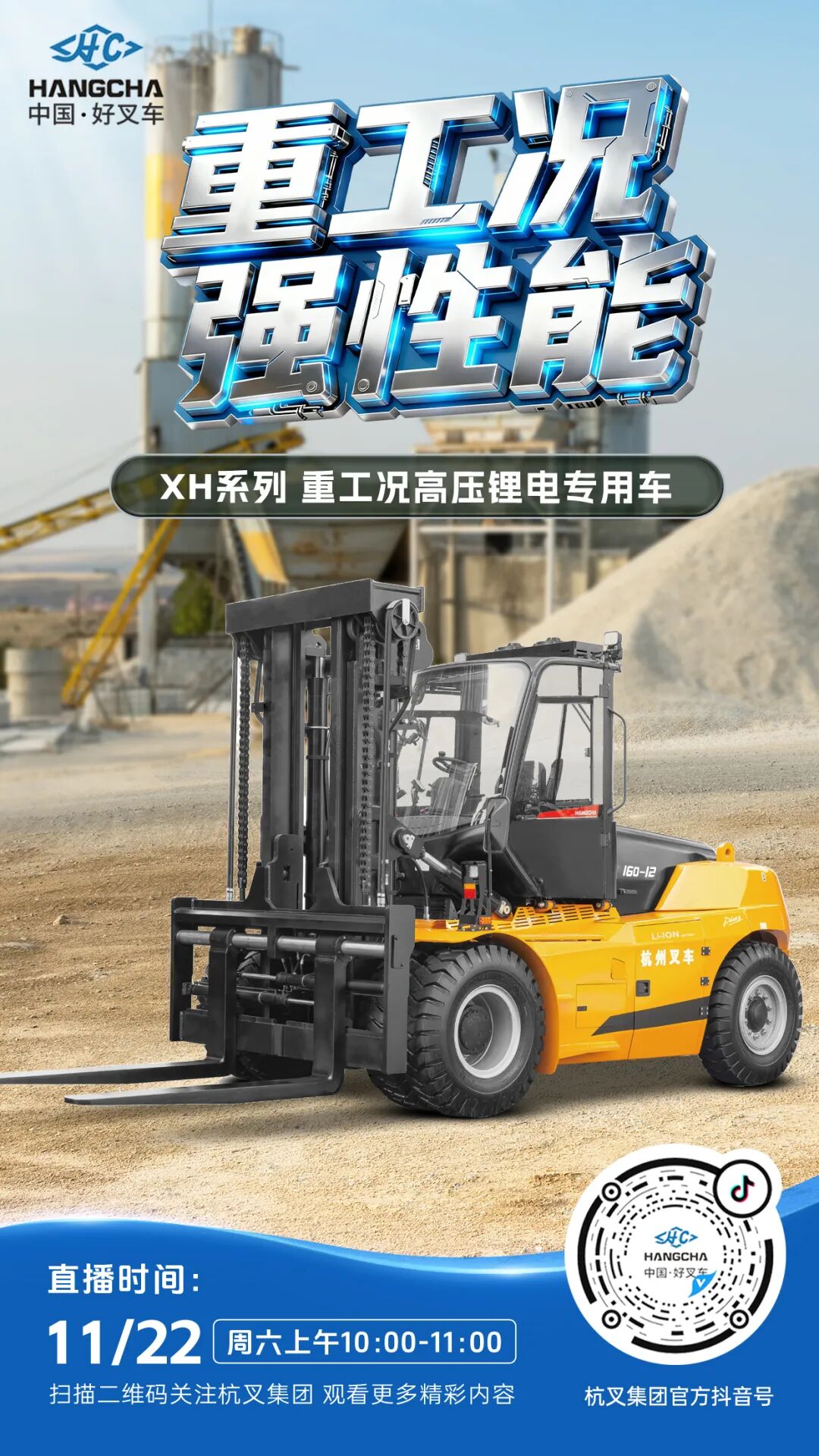 直播预告|杭叉新能源——杭叉XH系列大吨位高压锂电叉车专场直播!