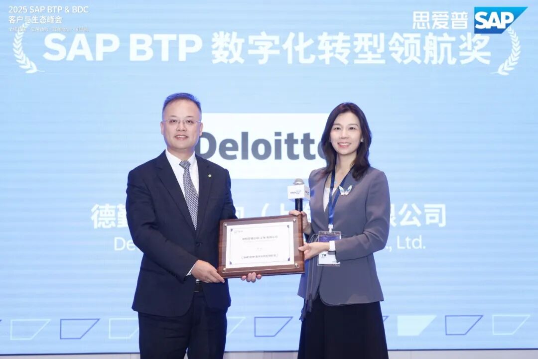 此前,德勤亦作为核心合作伙伴参与了 2025 SAP BTP(业务技术云平台)与 BDC(业务数据云)客户与生态峰会,并在会上荣获“SAP BTP数字化转型领航奖”,体现了市场对德勤长期深耕 SAP 生态、持续推动AI与企业核心业务深度融合的高度认可。