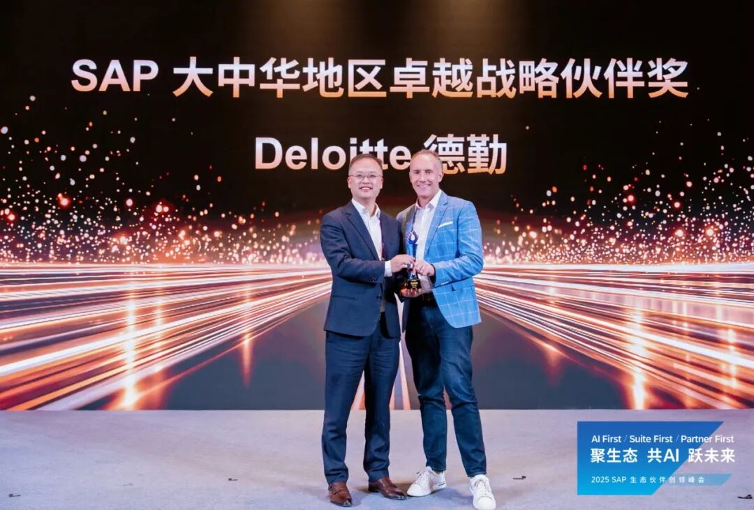 近日,SAP 在杭州成功举办2025 SAP 生态伙伴创领峰会,德勤作为 SAP 铂金级全球战略合作伙伴深度参与本次峰会,并凭借在AI赋能、联合解决方案创新及生态协同方面的突出表现,荣获 SAP 大中华地区卓越战略伙伴奖和 SAP 云战略转型特别贡献伙伴奖。这些奖项充分肯定了德勤在中国市场长期推动 SAP 生态建设与客户价值落地的战略贡献。