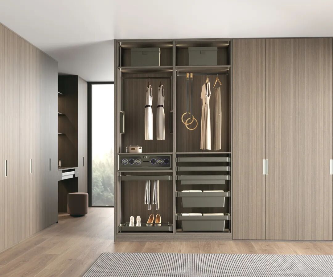 库博岚卡系列绝非简单的五金组合,而是对衣柜空间进行系统性思考的成果。它依据使用者从头部到足尖的收纳需求,实现了从饰品、衣物到鞋履的全品类收纳覆盖,进行上、中、下三段式科学规划,使衣柜空间不仅被极致利用,更升华为一件散发精致与高贵气质的家居艺术品,从根本上让家变得更整洁、有序。