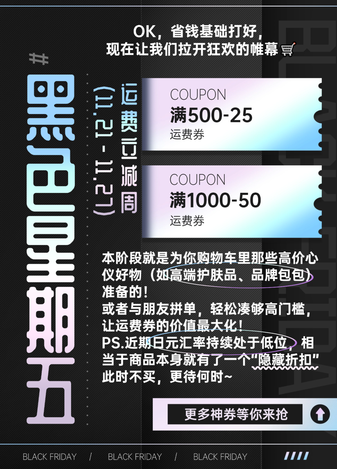 【黑五狂欢季】日淘运费券&手续费5折&砸金蛋,三重豪礼省到家!>>