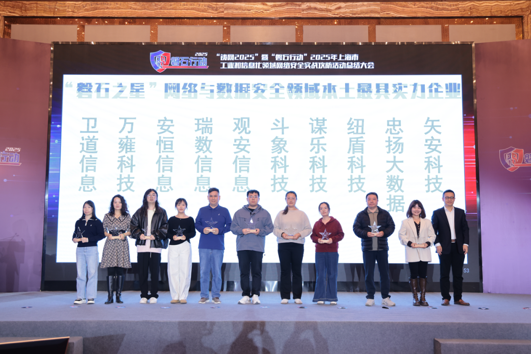 近日,上海市通信管理局联合市委网信办、市经信委、市公安局、市教委、普陀区人民政府和长兴岛管委会共同组织召开“铸网2025”暨“磐石行动”2025年上海市工业和信息化领域网络安全实战攻防活动总结大会,通报总结攻防成果并为优秀单位颁奖。
