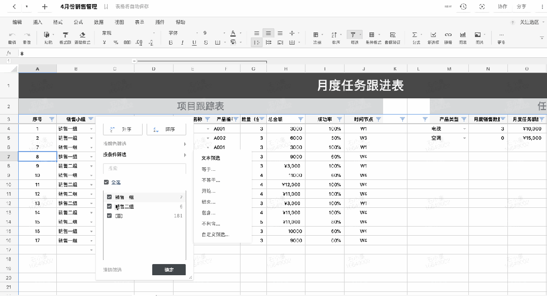 石墨表格还支持对筛选结果进行锁定。例如:在表格中筛选出销售一组的数据,设置权限,只有销售一组能填,在你选择想要锁定的范围时,可以按住 cmd/ctrl 选择多片范围创建锁。