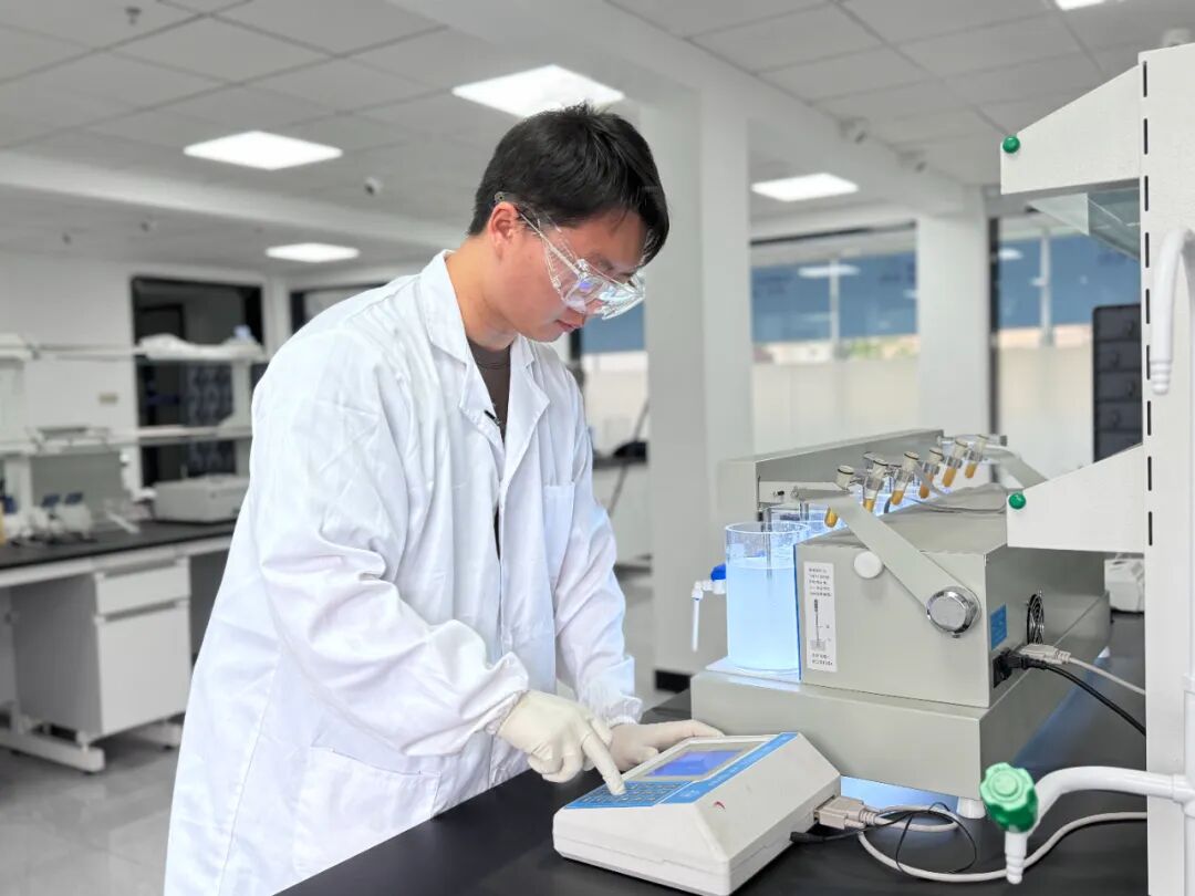 对极致的追求,成为彭雨龙在湖南省第二届职业技能大赛中脱颖而出的关键。2025年4月27日,在湘潭中环水务有限公司水生产处理工实操基地,彭雨龙正穿着白大褂实验服,戴着护目镜,神情专注地进行混凝优化实验。