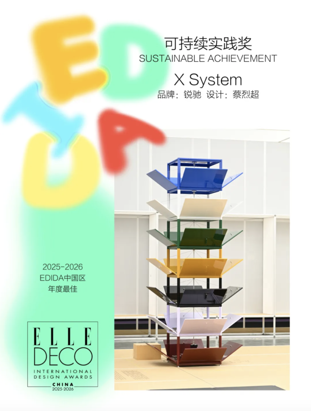 X System 以家具设计的创新解决方案入选 2025-2026 EDIDA 中国区榜单,荣获“年度最佳可持续实践奖”。该奖项由 ELLE DECORATION 专业媒体评选,CAMERICH 锐驰被作为中国设计创意与可持续发展中的一股力量,正在被世界关注。