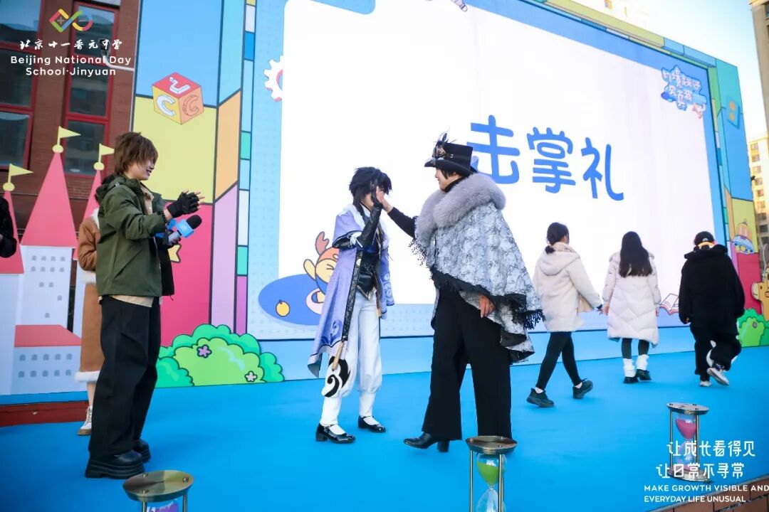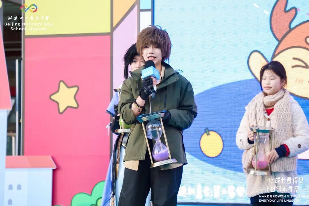 早上8点,四位主持人陈思言、李书鸣、周诗盈、高晟桓共同走上舞台,宣布了十一晋元中学2025“幻境跃迁见真我”狂欢节正式启动!他们将作为开幕式的“领航员”,带领我们共同进入今天的时空幻境!