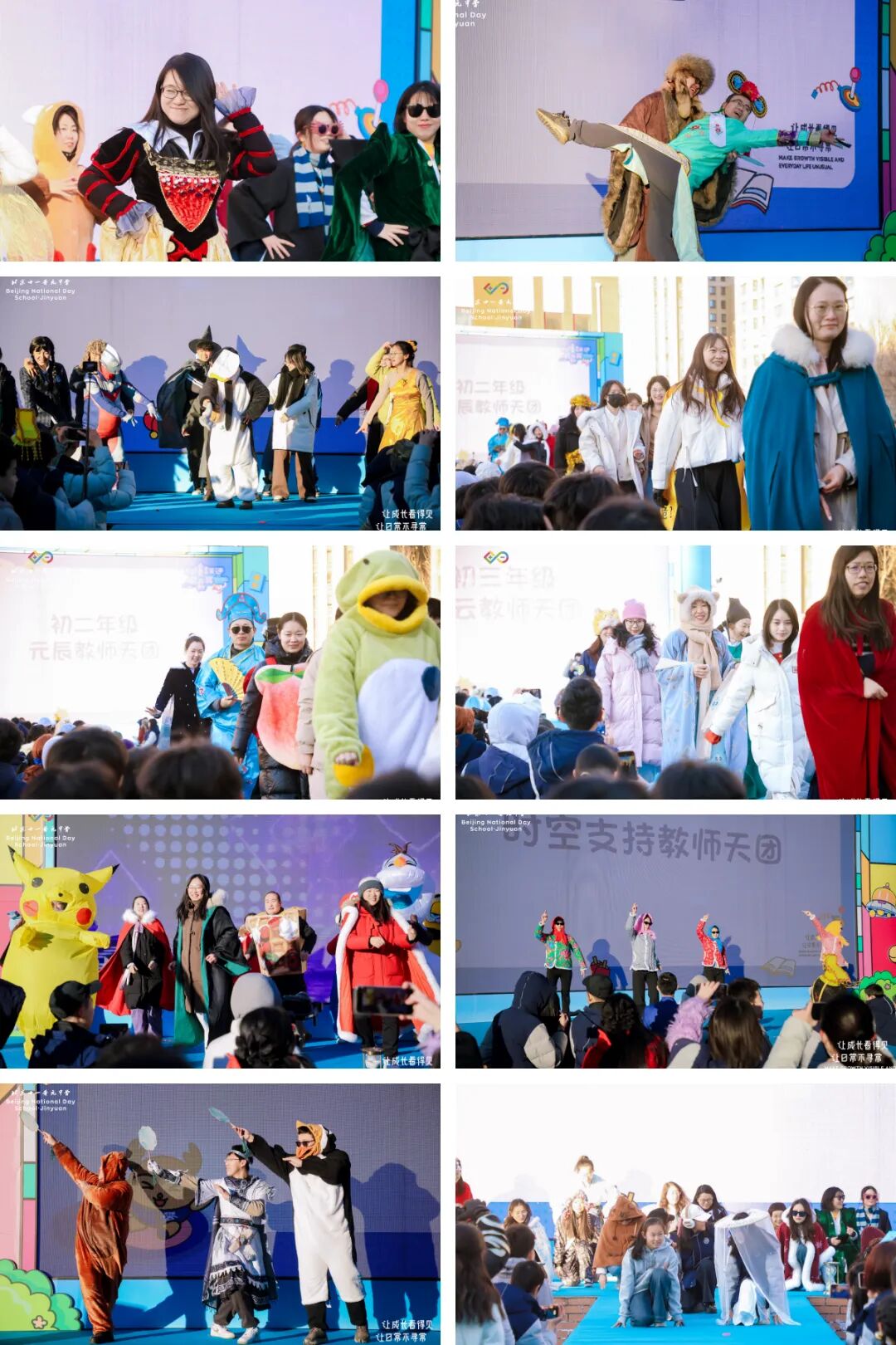 这场打破次元的狂欢,怎少得了点亮迷途的引路人?在同学们闪亮登场之后,三个年级的老师们也踏光而至!他们如同引路的航标,陪伴我们的成长。今天的他们,更加绽放出别样的魅力!
