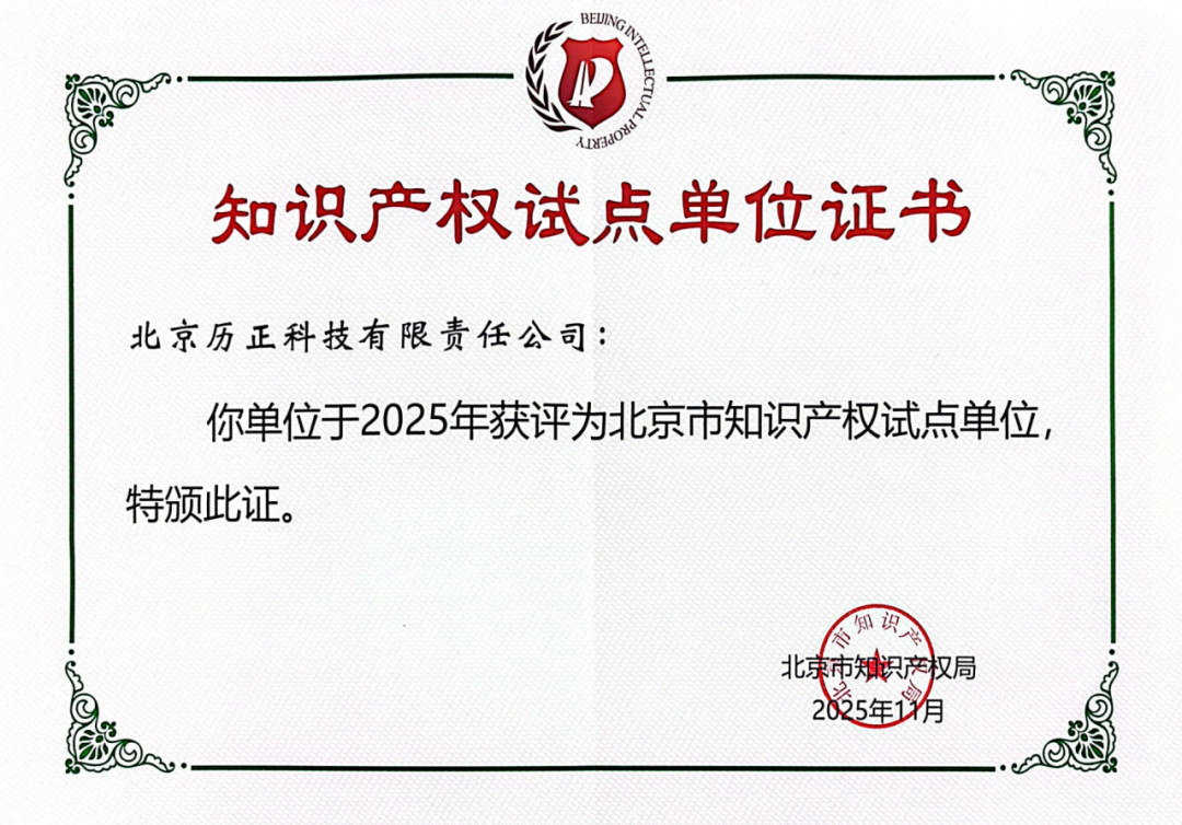 获评“北京市知识产权试点单位”,彰显了历正科技在知识产权创造、运用、保护和管理方面的综合实力已达到北京市标杆水平。