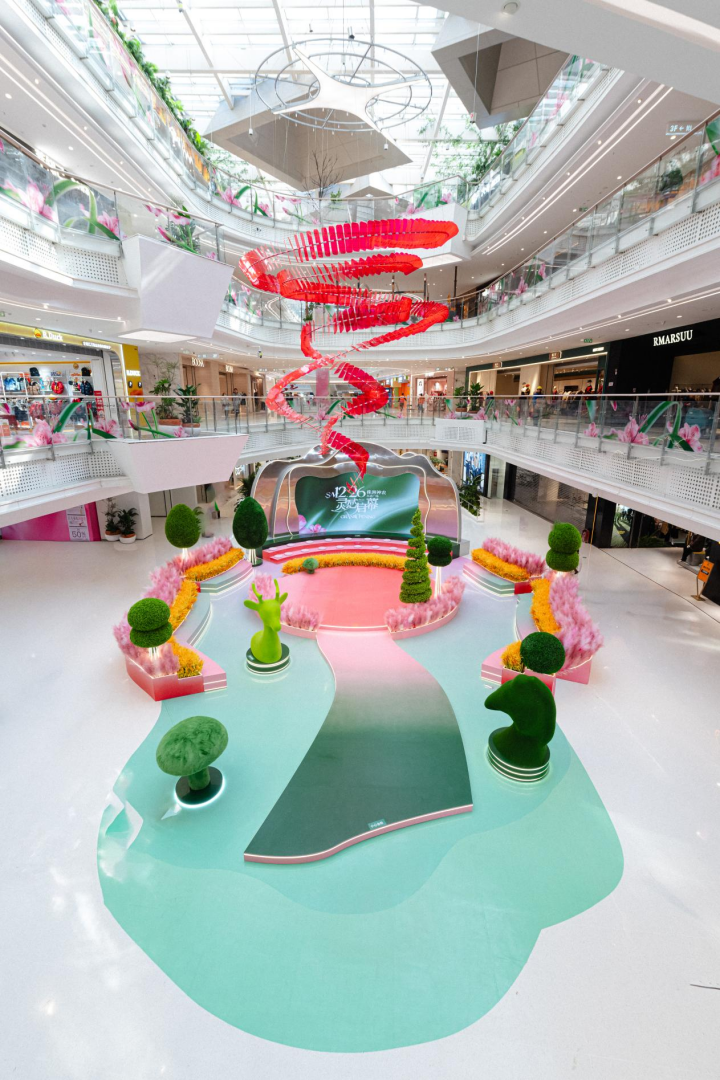 更巧妙的是在地文化与空间设计的融合:有氧街区种植射干、北苍术等药用植物,呼应“神农尝百草”的神话传说;三湘四水烟火食巷还原湖湘市井风情;886㎡的日丰庭则成为城市级快闪与艺术展陈的核心场地,让商业空间成为承载文化记忆的沉浸式体验场。自然运动空间、无界社交空间、3D裸眼大屏虚实呈现空间等多元场景,则进一步丰富体验维度。