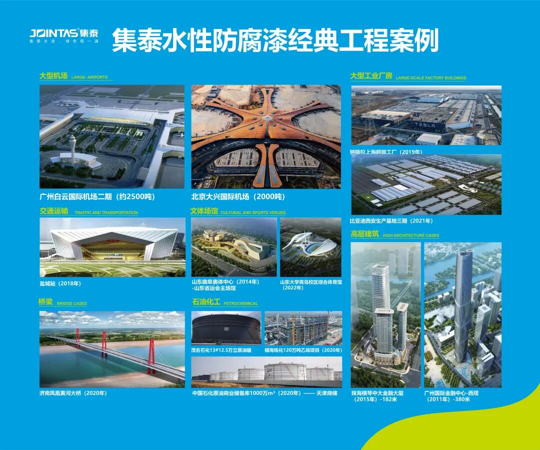 在应用端,产品已深入国计民生的关键领域——从北京大兴国际机场、广州国际金融中心等地标性建筑,到三峡夷陵长江大桥、京珠高速黄河二桥等重要基建工程,再到中石油、中石化等核心能源储罐,真正构筑起“刷遍长江黄河”的市场口碑。