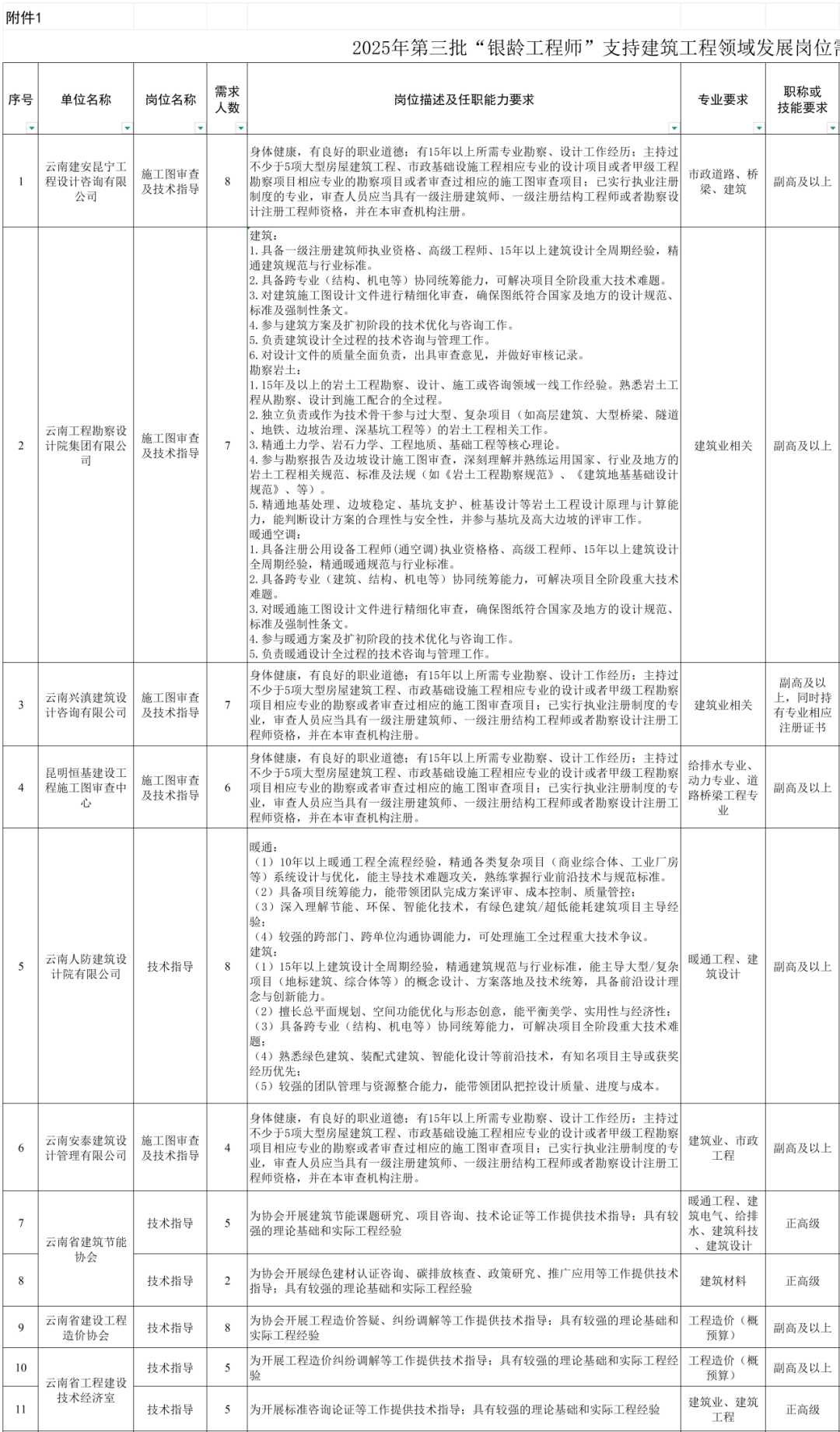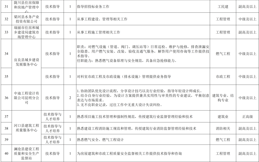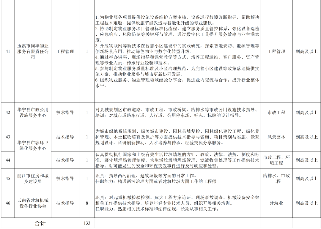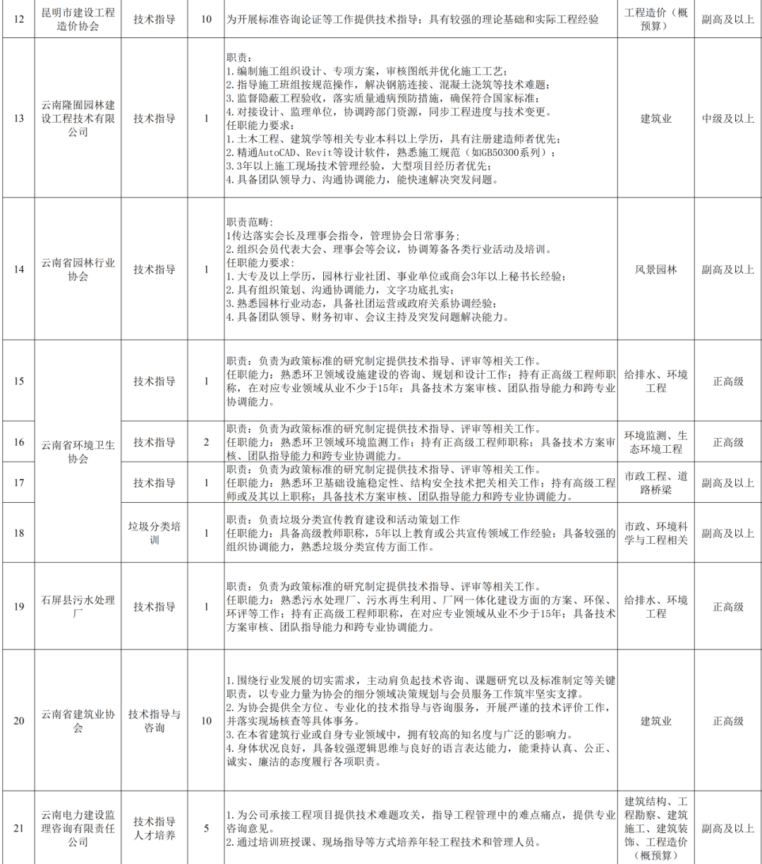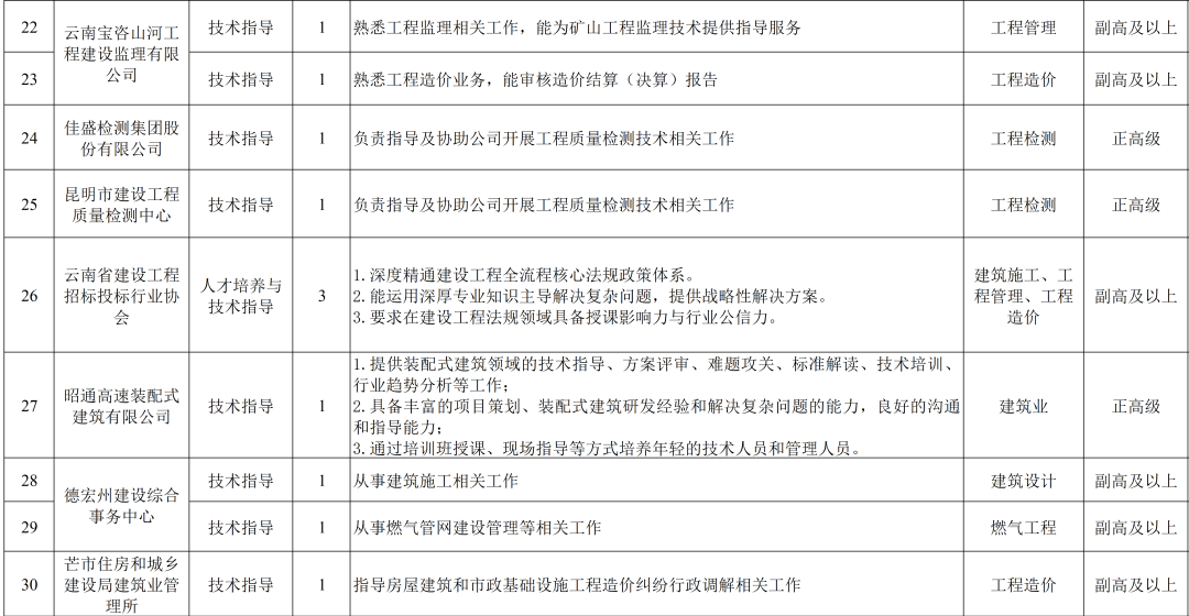 云南省住房和城乡建设厅发布《招募2025年第三批“银龄工程师”支持建筑工程领域发展的公告》,招聘133人。