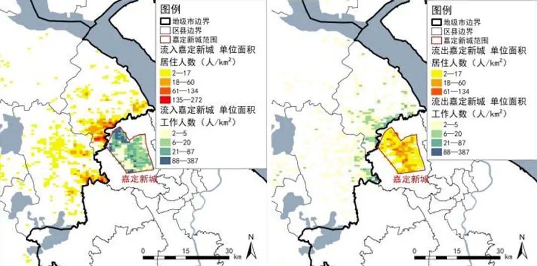 图3-2 嘉定新城跨城通勤者的居住地及工作地分布