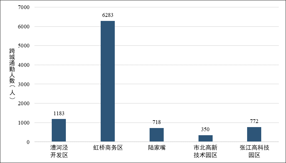 图1-2 长三角地区跨城通勤者在上海的工作地分布
