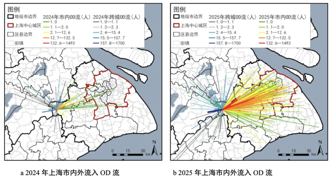 图5-1 2024与2025年上海市内市外通勤人数对比
