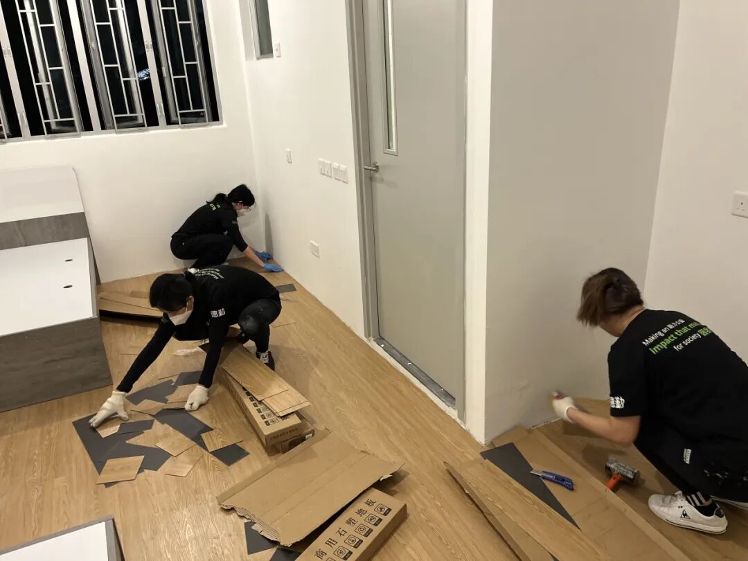 目前,我们已经组织多批次志愿者团队,携手社区伙伴开展实地支援,包括:参与餐盒的准备与派发,支持居民基本饮食保障;协助组装床具与家具,帮助家庭逐步恢复生活空间;参与过渡屋地板铺设,改善暂居环境的安全与舒适。