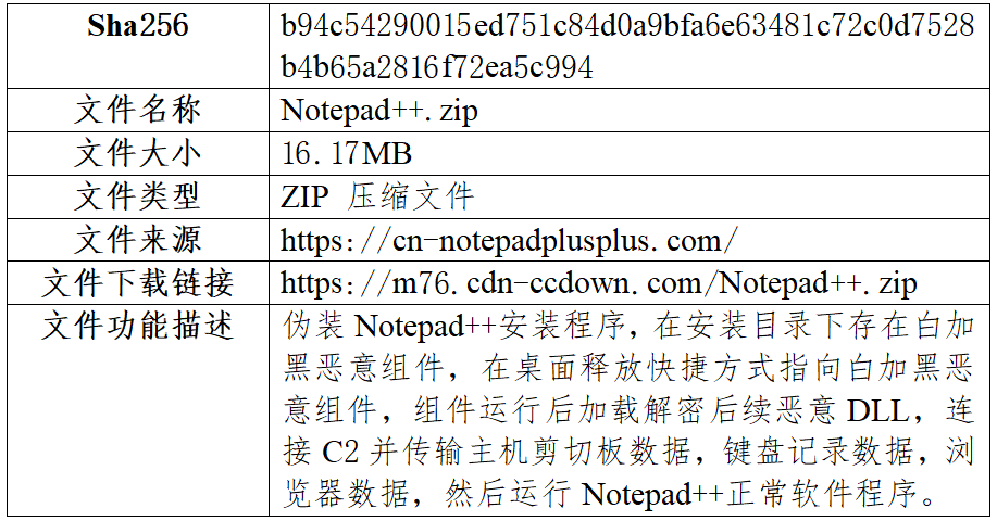 样本初始载荷伪装为Notepad++安装包:
