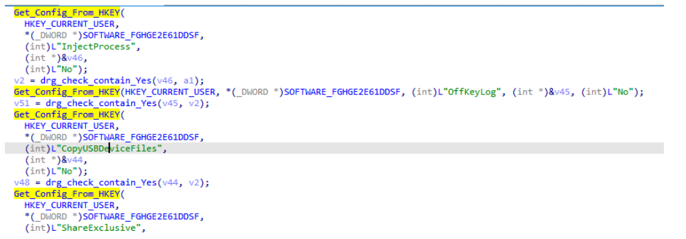 图10 恶意程序读取注册表内预设的配置信息