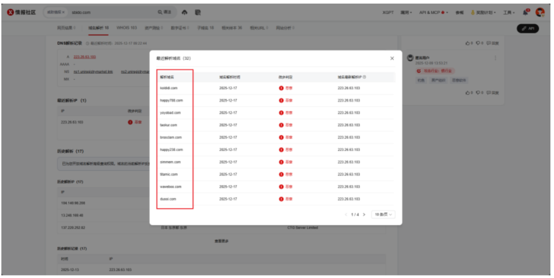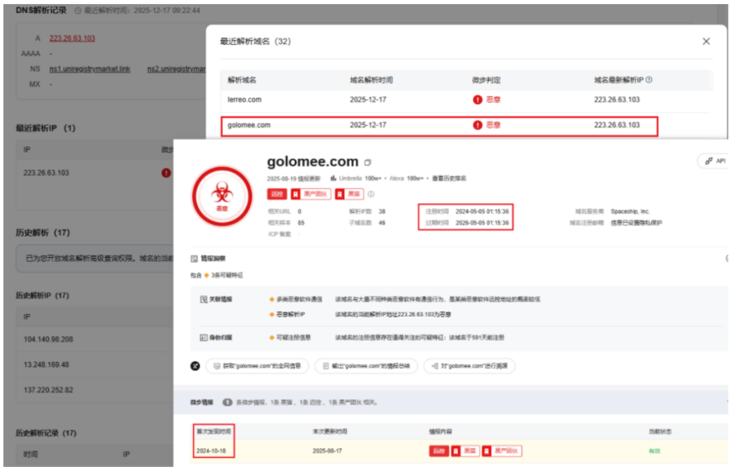 且部分解析域名为微步情报局在24年10月披露的黑猫C2域名: