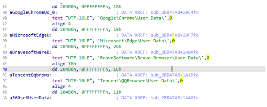 该木马主要功能为窃密,主要窃取受害主机浏览器数据: