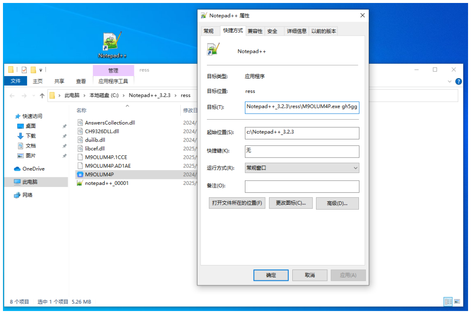 程序安装完成后,后门组件不会直接执行,而是通过在桌面生成快捷方式,而快捷方式指向后门组件入口: