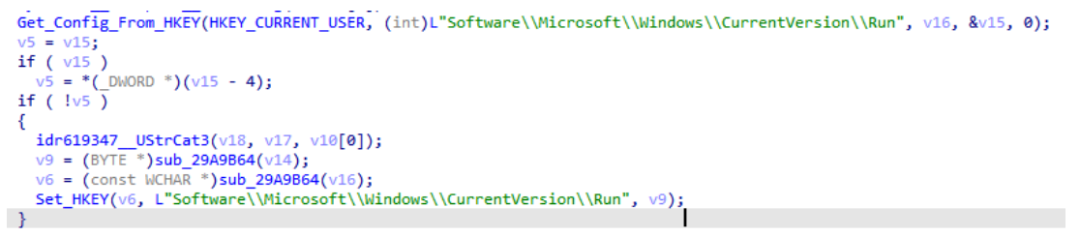 图13 恶意程序通过自启动设置来保证持久化驻留