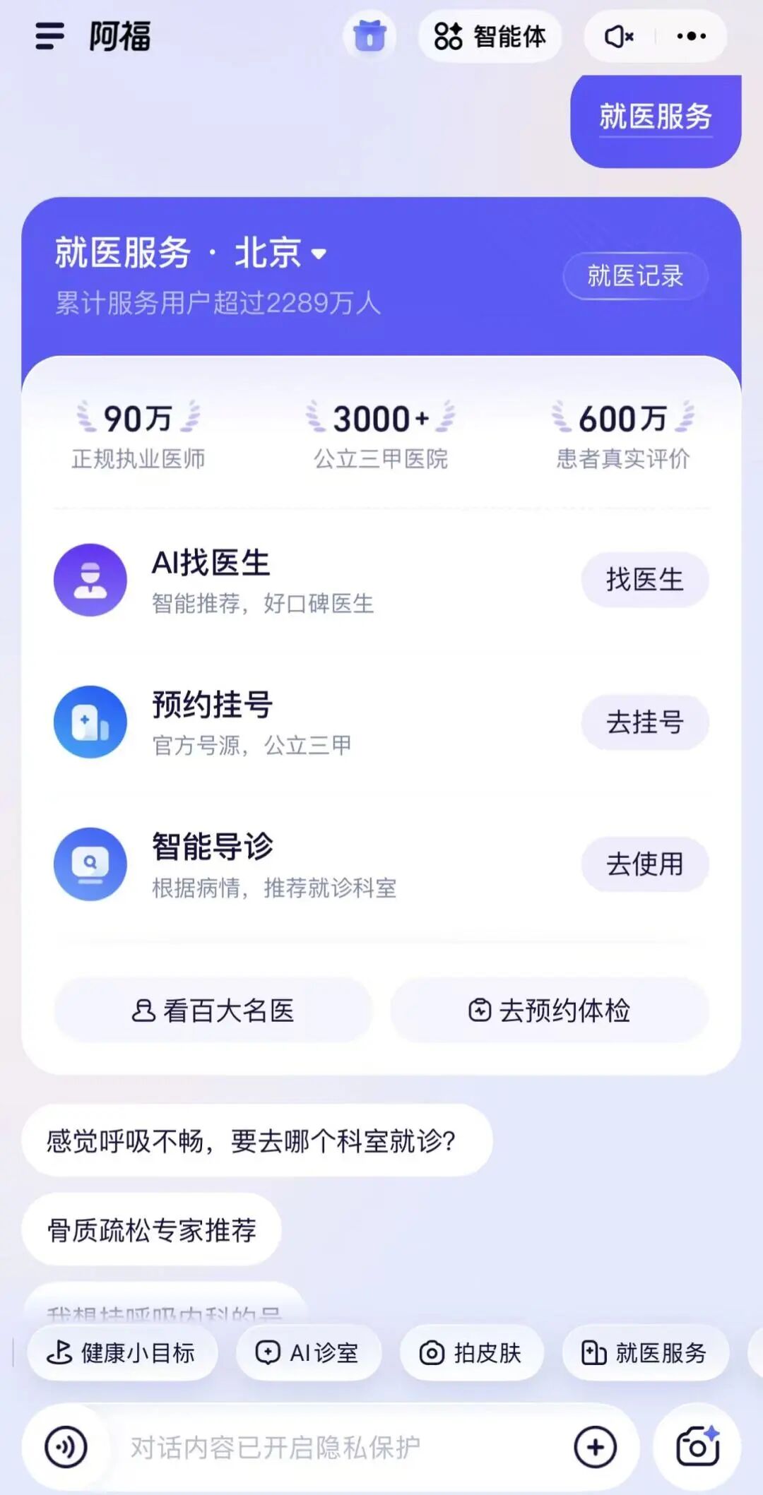 传统就医行为通常是低频行为,但阿福试图将健康监测、慢病管理、生活习惯调整等内容纳入日常使用场景,提高用户使用频率,从“单次回答工具”转向“生活健康伙伴”。这种场景化设计有助于建立长期用户黏性。