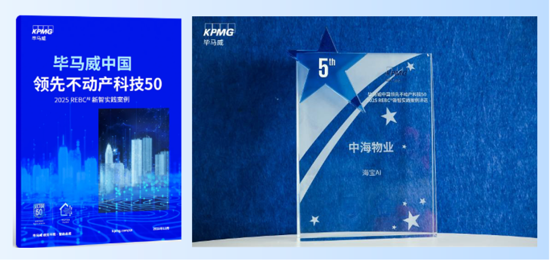 中海物业荣获毕马威“2025领先不动产科技50”AI突破奖