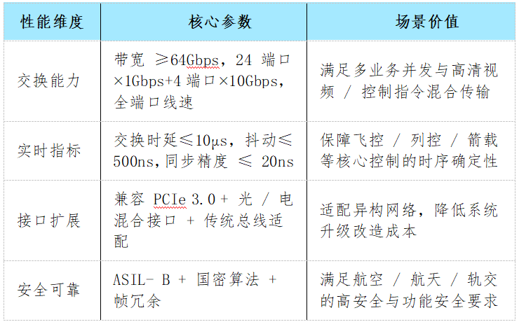 10Gbps全端口线速、≤10μs 交换时延、≤20ns 同步精度等硬核指标,搭配端节点芯片的一致高性能,在全栈国产化(IP / 工艺 / EDA)与J用级质量适配的双重支撑下,成为国科天迅 TSN 解决方案的核心,为商业航天、商用飞机、轨道交通、海上货运四大场景提供高可靠实时通信保障,实现 “确定性传输 + 自主可控 + 场景适配” 三位一体能力。