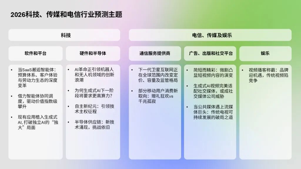 点击“阅读原文”,下载《2026科技、传媒和电信行业预测》报告全文。