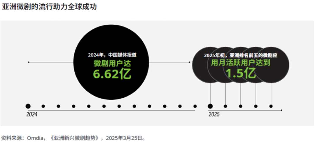 截至2024年,中国媒体报道全国微短剧用户规模约为6.62亿人。另一份2025年初的报告发现,中国排名前五的微短剧应用的月活跃用户(MAUs)总数为1.5亿。中国领先的视频流媒体平台正与短视频平台合作,共同制作优质短剧,或许预示着长视频与短视频内容融合的未来趋势。