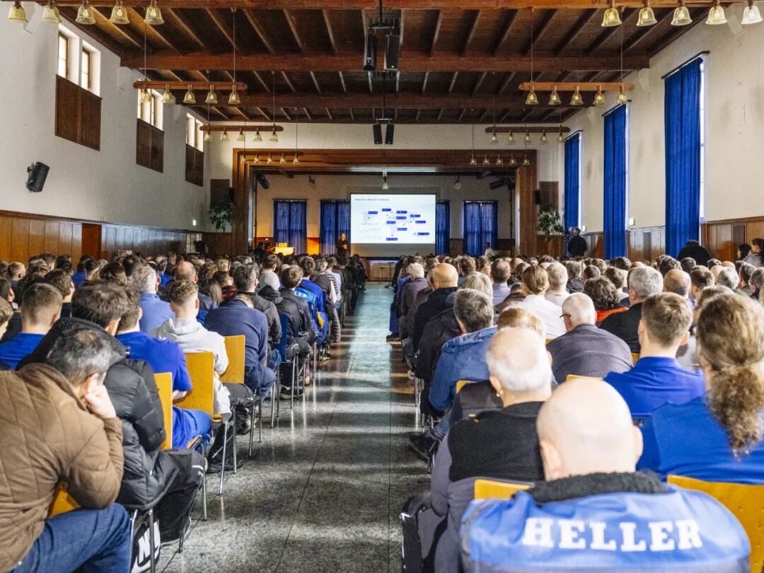 (DN Solutions迪恩机床代表金源钟27日在德国纽丁根市HELLER总部举行的员工市政厅会议上发表讲话)