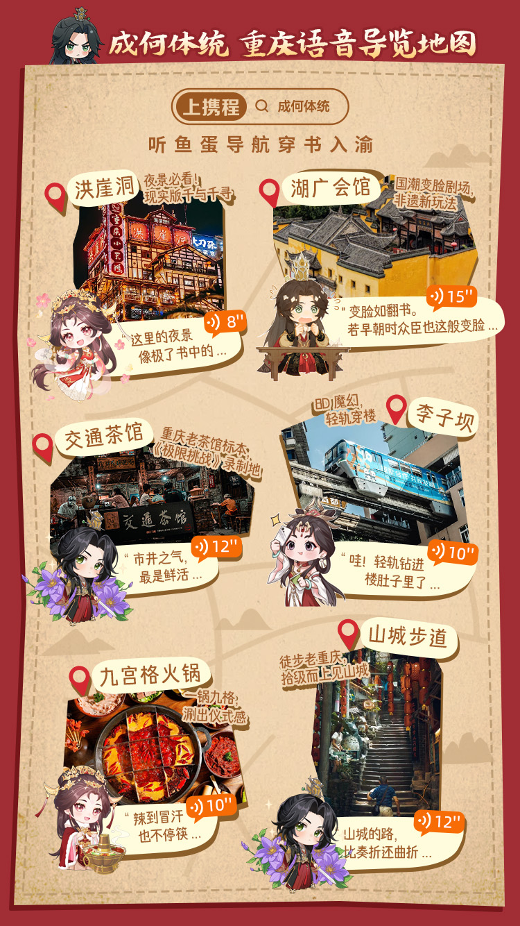别着急,福利还没完!本次活动的“二次元文化火锅安利官”——庾晚音&夏侯澹,还献出了他们的私藏山城语音导览!听鱼蛋导航安利,带你玩转重庆!