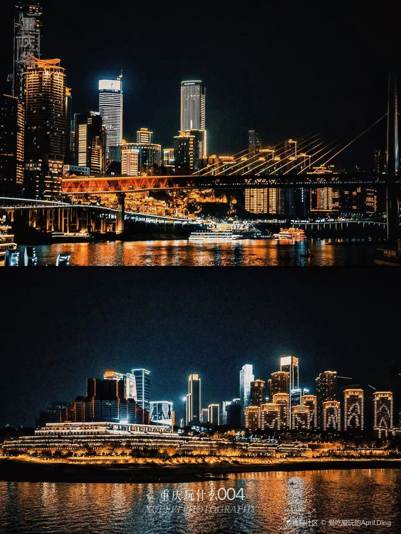 当夜幕降临,山城换上璀璨的晚装。登上游船,开启重庆两江游,在南滨路如梦似幻的灯光秀中,赏两岸流光溢彩,一幅流动的立体画卷在眼前缓缓展开。