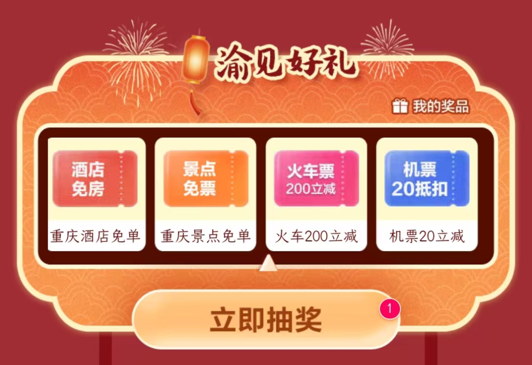 ● 出行优惠:重庆机票20立减,火车票200立减券