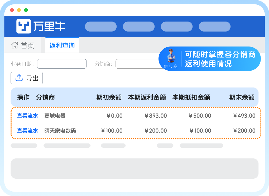 此外,供应商和分销商均可实时查询返利余额、使用流水,信息全透明,让分销商心里有底,合作粘性持续增强。