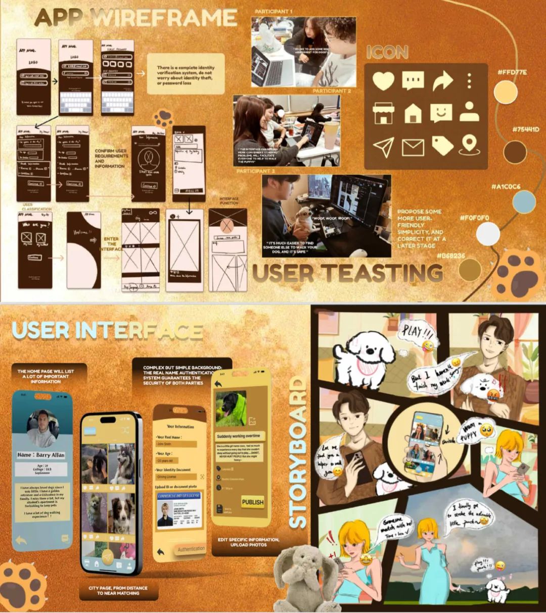 在作品集中,周小媛设计了一个宠物饲养APP,用她的话说就是“共享遛狗”,帮助因为工作、旅行等无暇照顾家中狗狗的人们搭建一个桥梁,让他们接触到喜欢和宠物互动,可以临时提供寄养与宠物照顾的人。