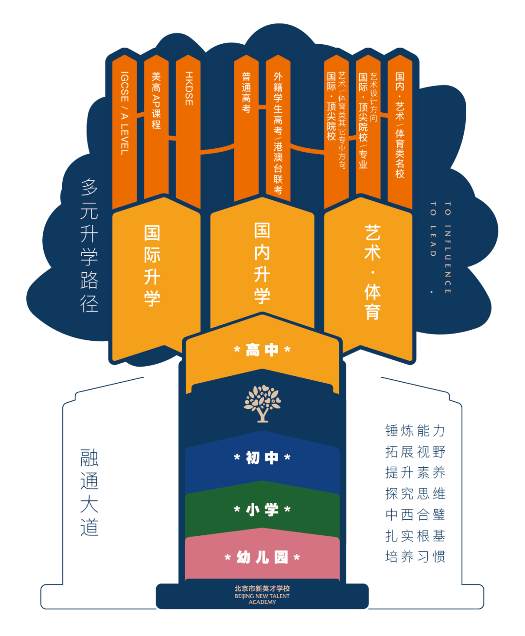 是一所集幼儿园、小学、初中、高中为一体的十五年一贯制学校。义务教育阶段夯实基础,扎实学术;高中阶段呈现多元升学路径,包括国内高考课程、英国A Level课程、美国AP课程、中国香港DSE课程、国际艺术高中课程等,最大化满足学生个性化升学需求,为每一位学生提供最适合的课程,打通全球升学路径。