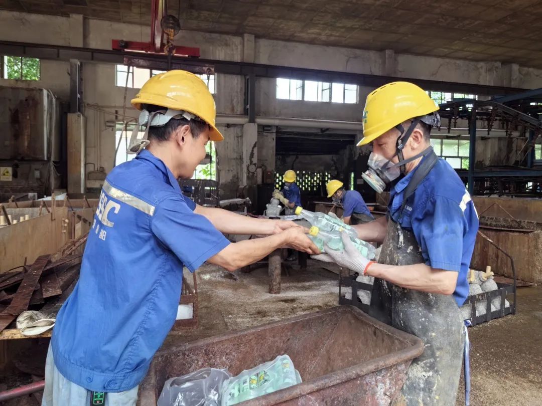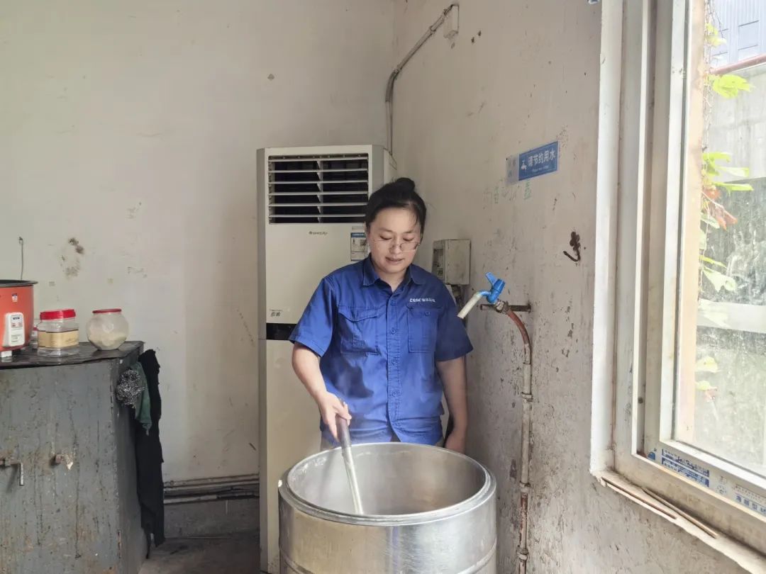 车间为员工熬煮清凉解暑的绿豆汤,让员工能在工作之余能喝上一碗清凉解暑的解暑凉水