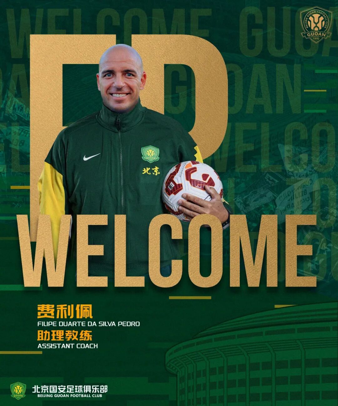 北京国安足球俱乐部正式宣布,费利佩、安德鲁、汉斯加入一线队教练团队。费利佩(Filipe Duarte Da Silva Pedro)加入一线队教练团队,担任助理教练。现年38岁的费利佩,持有欧足联A级教练证书。费利佩曾在葡超葡萄牙体育青训梯队执教多年,并于2020-22赛季担任葡萄牙体育U23梯队主教练,率队打入欧冠青年联赛8强。2023赛季,费利佩担任天津津门虎一线队助理教练。2024赛季,费利佩担任安哥拉国家队助理教练。2025赛季,他担任坦桑尼亚年轻非洲人体育俱乐部助理教练。俱乐部期待费利佩的加入,能够更好地协助主教练工作,提升球队战术执行力,帮助球队取得更好的成绩。安德鲁(Andrew Douglas Thomson)加入一线队教练团队,担任助理教练。现年44岁的安德鲁,持有欧足联A级教练证书及美国足协教练员证书,曾在美国国奥队、澳大利亚中央海岸水手、美国联赛迈阿密FC等球队担任助理教练,并曾于迈阿密AC担任一线队主教练。除此之外,安德鲁在球员发展领域具备极强的专业能力,曾帮助现效力于英超阿斯顿维拉的麦金等多位球员提升水平。俱乐部期待安德鲁的加入,能够更好地协助主教练工作,全面提升球员能力,帮助球队取得更好的成绩。汉斯(Hans-Peter Berger)加入一线队教练团队,担任守门员教练。现年44岁的汉斯,球员时代曾入选奥地利国家队。退役之后他转型为守门员教练,并取得欧足联Pro-A级别守门员教练证书和B级教练证书,曾在奥地利U16-U20阶段的多支国青队担任守门员教练。2022-2025赛季,汉斯担任成都蓉城一线队守门员教练,在提升守门员技术水平和年轻守门员培养上颇有建树。俱乐部期待汉斯的加入,能够提升一线队守门员的场上表现,帮助球队取得更好的成绩。