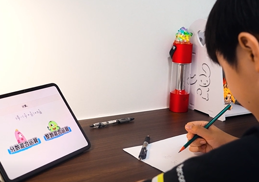 除了独特的动画教学极具吸引力,叫叫思维的互动题目、配套奖励体系也让金宝觉得特别有意思。“我最喜欢里面的挑战环节了,我和绿豆一起用刚学会的知识去做挑战题,输了绿豆会告诉我答题方法,赢了又有奖励,这和打游戏一样,难题越练越‘上头’。”金宝说。
