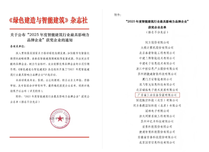 公司凭借在智能建筑领域的强劲技术实力与突出行业贡献获评“2025年度智能建筑行业最具影响力品牌企业”。