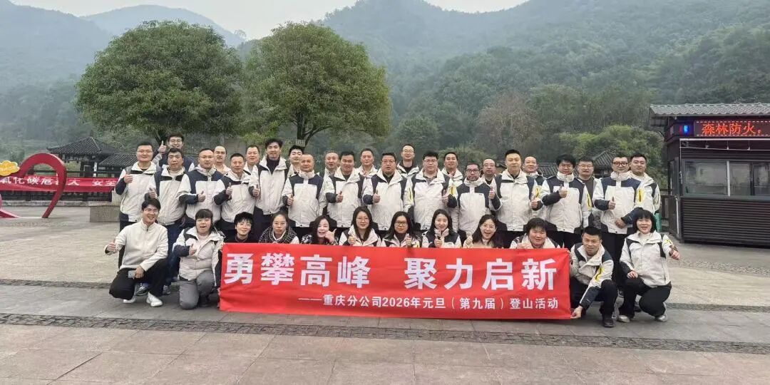 同日,重庆分公司在重庆市九龙坡区白市驿森林公园举办“勇攀高峰·聚力启新”登山活动,分公司全体职工齐聚白市驿镇山脚下,以昂扬姿态迎接新年开篇。大家沿着蜿蜒山路稳步前行,沿途相互鼓劲、携手互助,将欢声笑语洒满山林。登顶时刻,众人俯瞰山河美景,合影留念定格团结奋进的瞬间。
