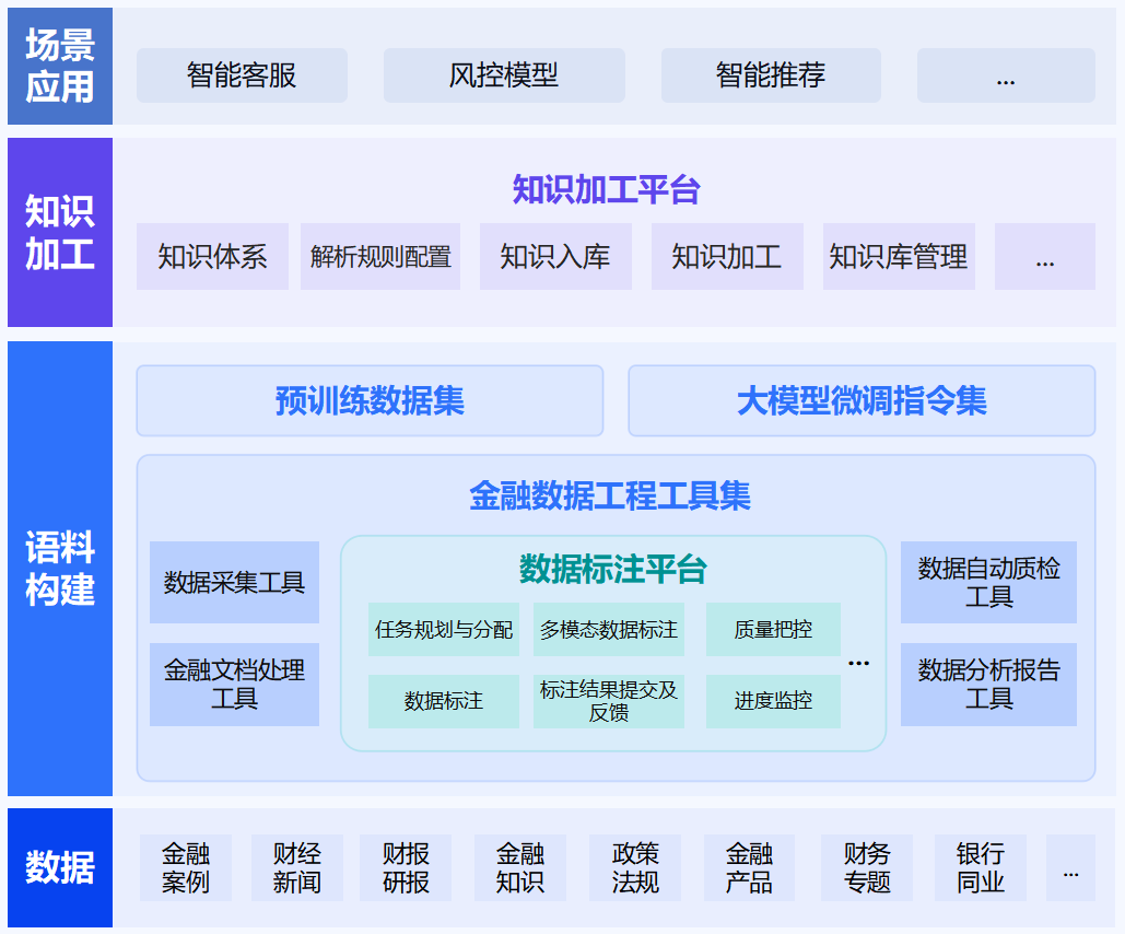 围绕具体业务场景(如智能客服、信贷风控),融合行业通用信息与行内特色数据,设计符合业务需求的数据集建设方案。通过提供配套标注工具与标准,帮助银行逐步建立自主、可控的语料生产流程,持续提升AI模型在实际场景中的表现。