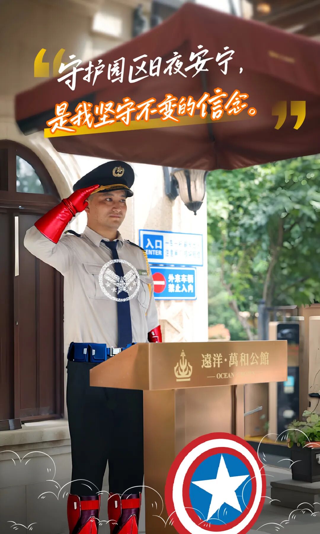站岗巡逻、车辆引导、应急响应……秩序员正如美国队长一般,以责任为盾,以行动为剑,日夜守护社区安宁,成为业主心中最踏实的安全屏障。