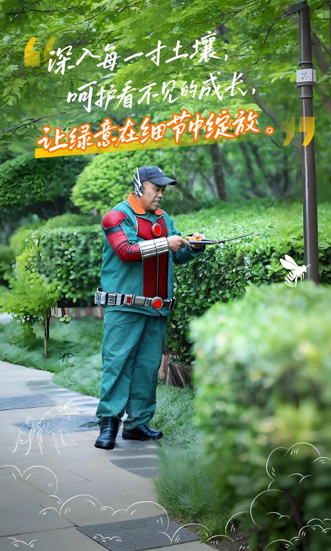 绿化师傅们默默耕耘在社区的每一个角落,修枝剪叶、灌溉养护,让草木有序生长、花开四季,为业主打造一个常绿常青的美好家园。