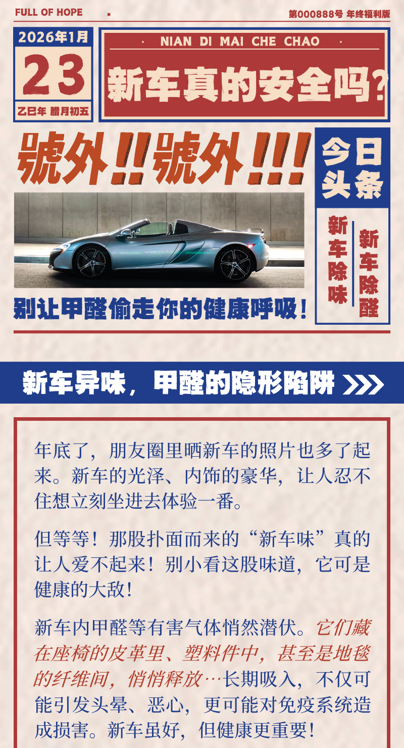 年底买车潮来袭!你的新车真的安全吗?别让甲醛偷走你的健康呼吸!