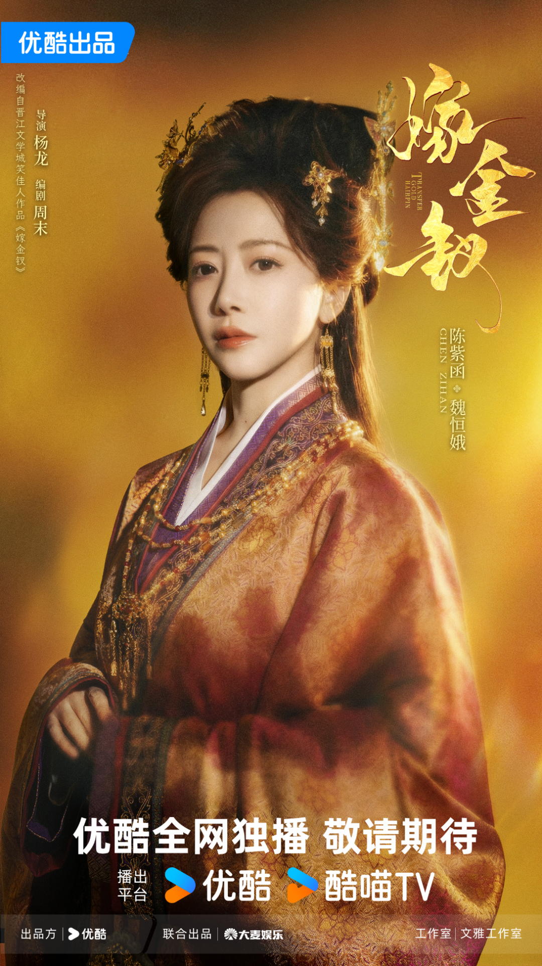 1月22日,由优酷出品、大麦娱乐联合出品的剧集《嫁金钗》正式官宣阵容。该剧改编自晋江文学城作者笑佳人的同名小说,由杨龙执导,周末担任编剧,演员田曦薇、闫桉领衔主演。